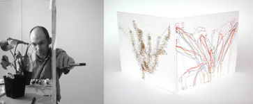 Others chose to look in different ways. Using his eye tracker, Jochem Hendricks draws by recording his eye movements, showing just how much our eyes flit about even when trying to trace the outline of what we’re looking at.