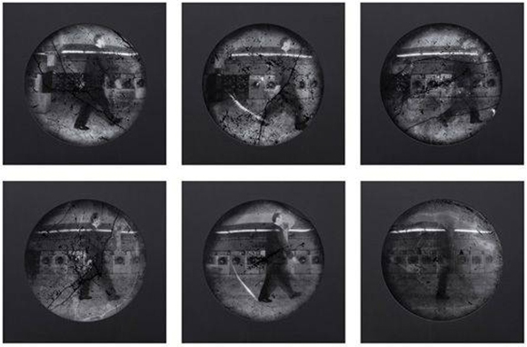 Pippin has also explored the way photography can help us understand movement, revisiting the work of Eadweard Muybridge. To create his row of cameras, Pippin decided to use the washing machines in a New Jersey laundromat. Pinhole cameras were made and trip wires were attached. Pippin walked both forwards and backwards through the space, both in a suit and trouserless.