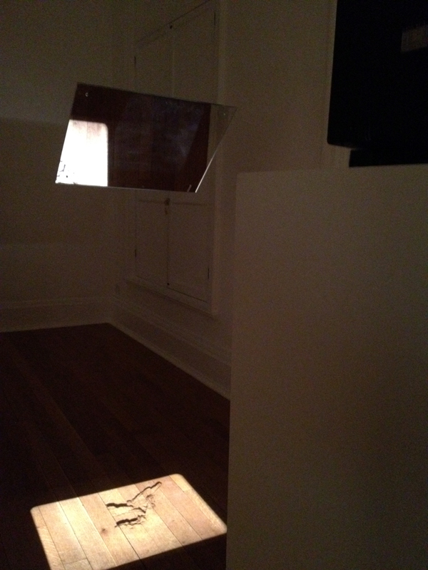 The three works here are all very simple but very effective; all use 16mm projection in different ways to activate the gallery space and I am entranced by the space and delighted not to have missed what now seems an extra special experience. In Wall Slap a hand repeatedly slaps the wall; in Paper Drop, projected straight down onto the floor using a mirror, a scrunched up piece of paper repeatedly lands on the gallery floor. Though I know that this is not the case, I’m slightly convinced I saw it fall. Black Corner lights up and then darkens a low corner of the space. The surprise of encountering these works when I thought I’d missed my chance made the experience of seeing them that bit more pleasing. It seems confusion can be useful when it comes to seeing art.