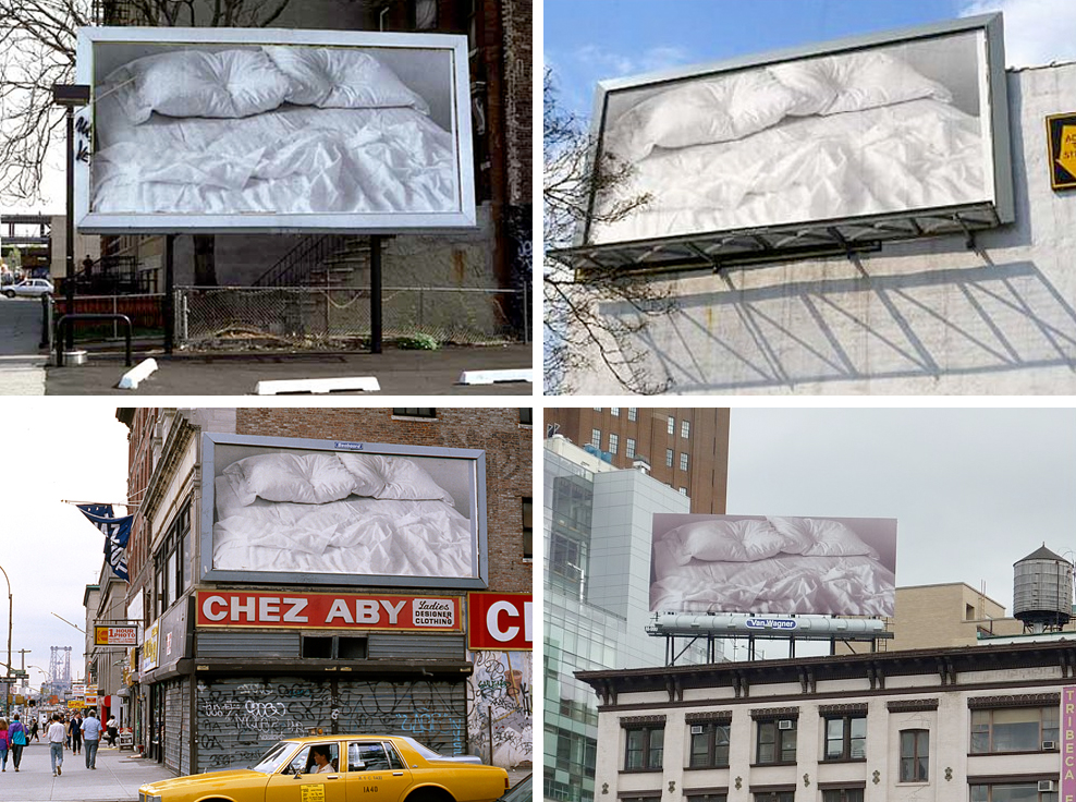 A bed is of course a private space. In remembering his partner and highlighting the AIDS pandemic, González-Torres made the private unexpectedly public, showing Untitled (Bed) on 24 billboards across New York City. Using advertising spaces to show art is a far remove from the white walls of a contemporary gallery space and challenges our understanding of the image and its reason for being there.