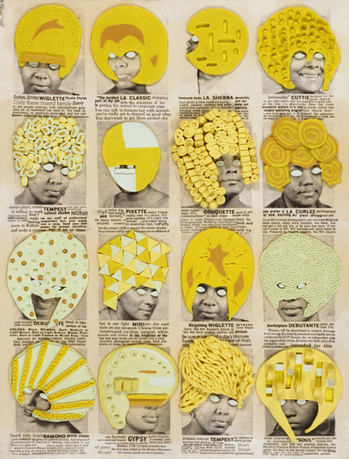 Significant highlights of my visit to MoMA were the connected exhibitions Print/Out and Printin’ that look at the way print is used in contemporary art. The latter, organised by artist Ellen Gallagher and Sarah Suzuki, Associate Curator in MoMa’s Department of Prints and Illustrated Books, is centred around Gallagher’s DeLuxe a grid of 60 frames each containing a collaged print based on adverts found in mid-twentieth century black lifestyle magazines and newspaper articles. DeLuxe is an extraordinary, fascinating work that demands, and rewards, close scrutiny. I am fascinated both by the adverts Gallgher has found and by her use materials – particularly plasticine – in the collages.