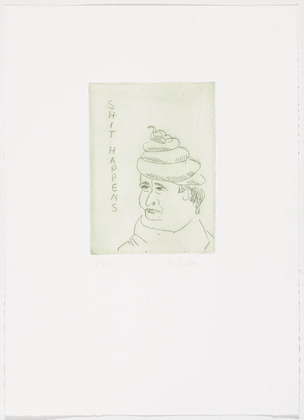 In 2001, with digital practices becoming increasingly widespread in the visual arts, Thomas Schütte decided to use very traditional, analogue image-making as a way of keeping a visual diary. Rather than drawing in sketchbooks, as he usually would, Schütte adopted the more labour-intensive approach of etching. He subsequently produced an edition of 139 prints, one of which is included in the Print/Off at MoMA.