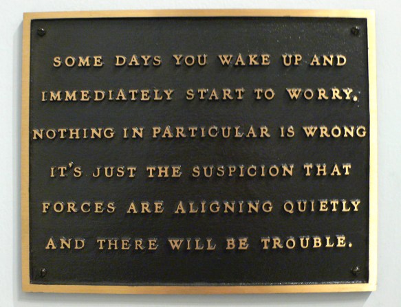 For the Living series, Holzer used bronze plaques as a way of giving the work a level of authority; we read such signs as being official but the text undermines that impression. This is a work that always makes me smile; somehow, though it appeals to a vague sense of paranoia, it seems very cheering.