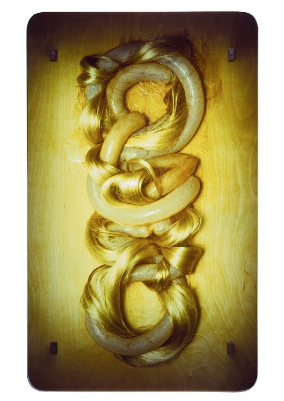 Chadwick’s photographic work is seldom less than visually seductive, yet even as it draws me in I am often repulsed by it. In Loop my loop, the contrast between the shiny beauty of the hair and the intestines with which it is intertwined is disturbing but picture wins me over before I register its darker side.