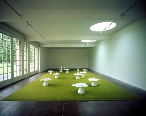 Ultimately though I think the work of Chadwick’s I like the most – though probably not, I think, her best work in any vaguely objective sense – is Piss Flowers. These sculptures are painted bronzes made by Chadwick casting the gaps made by her and her partner David Notarius pissing in the snow. For me the pleasure here comes partly from the disjuncture between the beauty of the objects and the manner of their making and partly from the simple fact that they make me laugh.