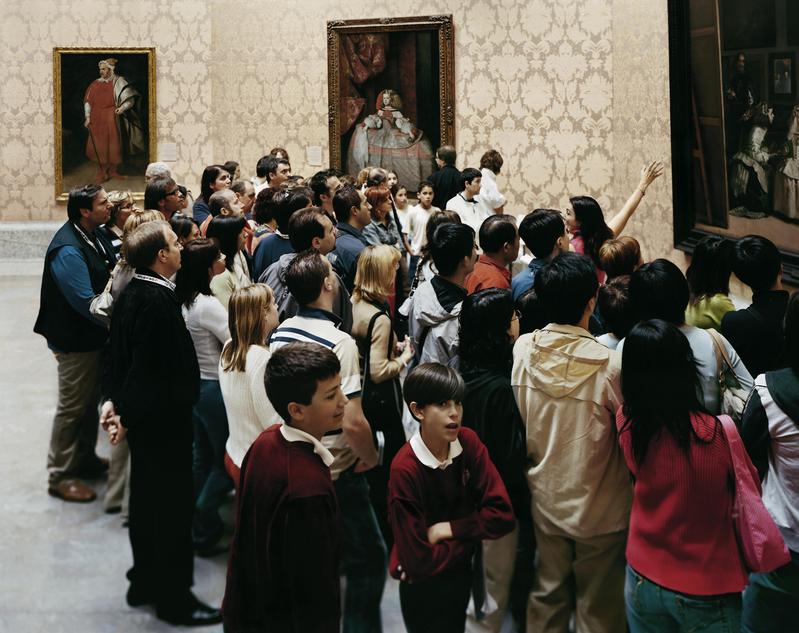 Here the group gathered before the painting – Deigo Velásquez’s Las Meninas, a painting in which Velásquez himself constructs a complex relationship between artist, subject and audience – is large, a guide is gesturing towards the work as she explains it to the group. Though most seem focused, at the front of the photograph two young boys on the periphery of the group are ignoring the proceedings; one looks towards the camera. It seems probable that the boys are at the museum with their parents but have become bored of looking at painting, or at very least distracted by the camera. Struth’s photographs encourage speculation about those who populate them based in part on the evidence before us and in part on our own experience of art museums.