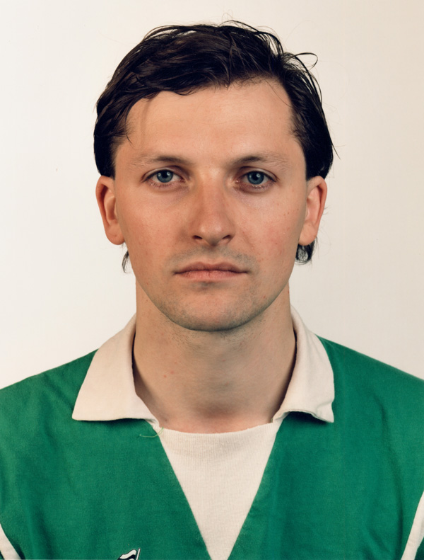 Having taken the slow route from the Bechers to portraiture it seems like a good time to ponder the more obvious forward jump, so today I’ve found myself thinking about Thomas Ruff’s Portraits, a body of work he started while still a student of Bernd Becher at the Kunstakademie Düsseldorf and has continued – in parallel with other work – ever since. Initially working in black and white, Ruff quickly moved to colour and made the series using a large format camera so that the faces are recorded in unrelenting detail. At their most simple, these are like passport photographs but for the eessential detail of scale: Ruff’s prints are around two metres tall.