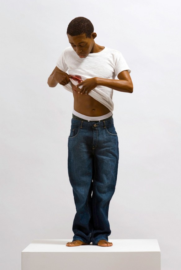 In a small room, slightly tucked away behind the reception desk so that I almost missed it, there’s one final work. Small and somehow very quiet, Youth raises his T-shirt to inspect a stab wound in his chest. There’s something very touching about his apparent lack of concern despite the obvious seriousness of the wound. Whereas the other works amused and fascinated me and even, in the case of Still Life, disgusted me a bit, Youth is quietly moving, adding an unexpected moment of seriousness to the exhibition.