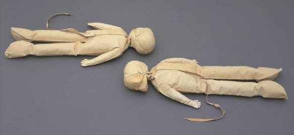In Phantom Twins – which was originally titled Twin, Hand-made, Childbirth Demonstration Models – replica foetal skulls are tightly wrapped in the leather that also forms the altogether less precise forms of the bodies. The twins are copies of models made for an eighteenth century Scottish obstetrician. For me, the duplication that makes them twins makes them more ghostly. I think I’d read a single model as a copy; though I recognise that this isn’t the case, as a pair they somehow seem to become a memory of particular twins.