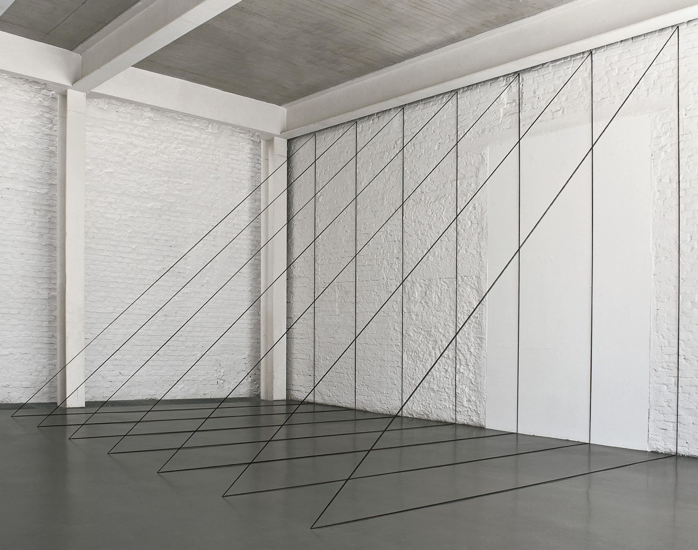I think it’s pretty clear by now that I quite like a bit of visual confusion and that I have a bit of a soft spot for the large scale minimal sculpture made in particular by American artists in the 1960s and ’70s (and later), which means Fred Sandback is definitely right there on my like list (even if I do have a tendency to forget his name from time to time, possibly, for some weird reason, I don’t expect artists to be called Fred).
