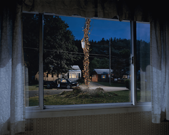As with Philip-Lorca diCorcia’s Hollywood the evening light provides more than just an atmosphere. This is twilight, the day is drawing to a close, night is closing in and anything is possible as the darkness encroaches. Indeed work from diCorcia’s Hollywood and Crewdson’s Twilight were at the heart of an exhibition at the V&A called Twilight: photography in the magic hour (I’d love to give a useful link here but the V&A website is bafflingly devoid of information); this notion of a ‘magic hour’ is a useful one in considering the narratives that lurk within all Crewdson’s pictures.