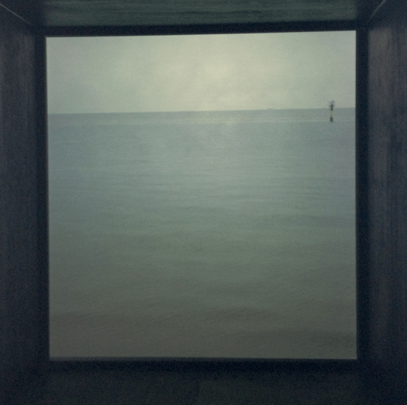 In a way the image on a screen half way back in the box suggests a camera obscure. Certainly the image is back projected and clearly depicts the view from the front of the box. But unlike a camera obscure projection this one is the right way up and the image is clearly a video projection. While a camera obscura is always an incredibly fascinating way to see the world, in a way this lacks drama. In part that’s down to the view. A right way up view of the sea isn’t inherently that interesting when the actual sea is just outside. And yet the work does hold my attention.