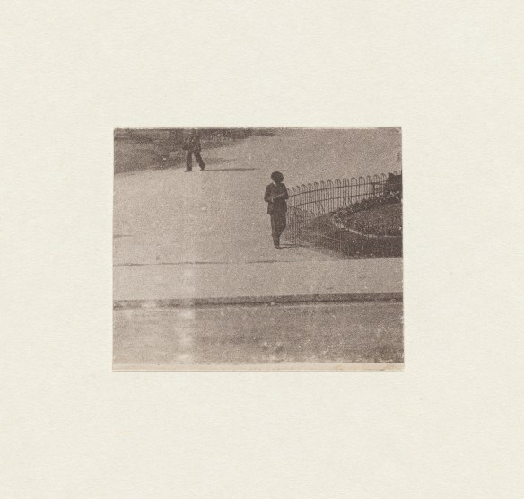 The work by John Stezaker in the exhibition includes images from several different series including the image fragments from the Third Person Archive for which Stezaker selects a small area from a bigger image and presents it out of its original context. This is the simplest possible form of collage – if indeed it can still be called collage at all – the fragment is placed within a blank space that draws attention to what we are not seeing even as it entices us to focus on what might otherwise have been an insignificant background detail. The selection made in the two images here is of a person reading as they walk along. These are quiet, inconsequential moments from everyday life that somehow become something more as a result of Stezaker’s intervention.
