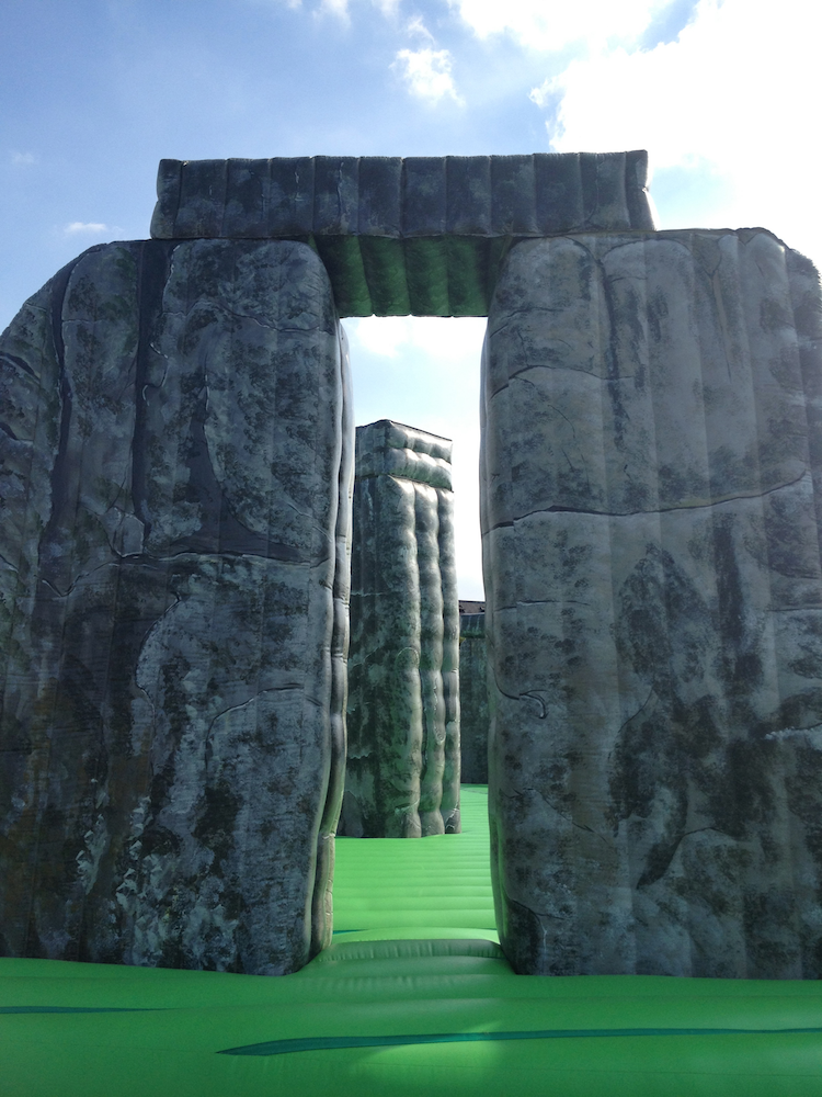 There’s something different about London this summer. The Olympic feelgood factor coupled with a bit of actual sunshine after the seemingly interminable rain means we seem to have found ourselves in a mood to both celebrate our country and the odder aspects of its history and traditions and to jump about. On hand to help out – as part of the London 2012 Festival, the culmination of the Cultural Olympiad – is Jeremy Deller’s Sacrilege. As playful reworkings of our heritage go, a life-size bouncy castle version of Stonehenge certainly hits the spot (especially as it comes complete with anxious announcements about health and safety).