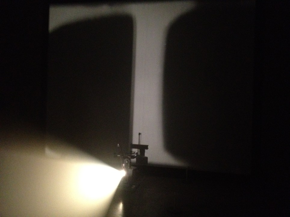 In many ways Lis Rhodes’s Light Music which I saw in The Tanks at Tate Modern reminded me of Anthony McCall’s solid light works, such as Line Describing a Cone (1973). There is the same use of a hazy space to accentuate the beams of projected light. But it is also a very different work. Though both can be described as drawings, Light Music feels more random, as the lines one screen come and go; like much of Rhodes’s work, in some ways, this feels more like collage.