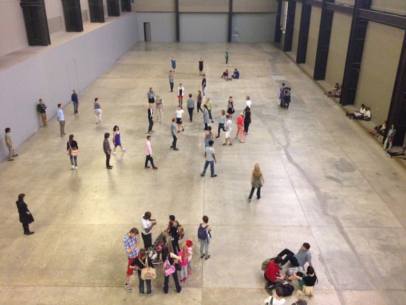 From the start, the Turbine Hall at Tate Modern has been unusual. Taking its name from the function of the vast space when the building was still a power station, it’s really not a typical museum space. The artists commissioned to make work for it have all responded to it in very different ways but it’s the response of the audience, almost as much as the work itself, that makes the annual Unilever Commission fascinating. From Olafur Eliasson’s The Weather Project (which I’ve written about before) to those brief few days when visitors to Ai Weiwei’s Sunflower Seeds were allowed the access the artist had intended before health and safety concerns caused the work to be cordoned off, the Turbine Hall somehow makes people behave more like they would at the beach than in an art museum. All of which makes Tino Sehgal (whose work I’ve touched upon before elsewhere) an intriguing choice for this year’s commission. How would an artist whose work lies in the dynamic between audience and performer make work for such a cavernous space? And how would the audience respond?