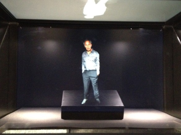 The next project I come across – and it’s one with several incarnations around the fair – is This Is Your Audio Guide, Cecile B Evans’s guide to the fair. This work – winner of the 2012 Emdash Award – took the form Simon Schama presenting the views of assorted non-experts on works on show at Frieze. One of the things that characterises events like Frieze is the adoption of the terminology of contemporary art and the market and off-setting this with more subjective commentaries is an intriguing intervention. That Evans adopts technologies such as holography in order to do this adds to the fascination of the piece. Whether I found all the audio guide points or not I’m not sure, but certainly I was actively on the lookout for them.