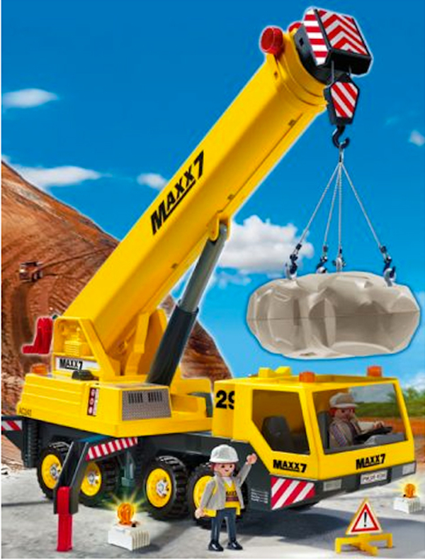 That’s right. To illustrate what they wanted to do in making an artwork for the side of the tourist route, Fischli/Weiss used a picture from the box of a Playmobil crane. Good work!