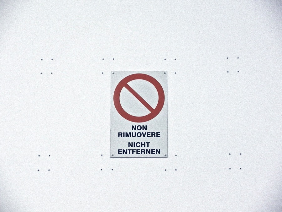 Anyway, what pleases me here is in part the neatness of the grid of rawlplugs – surely such careful placing must be for a reason, so why is nothing attached to the wall? – and that sign: Do Not Remove. Was the grid made to hold stuff to the wall? If so, what? The emptiness of the blank wall is an absence, it’s just that we have no way of knowing what might be missing. It seems clear that the sign was wilfully ignored. Or was it? The sign of course fits the grid perfectly and it’s using one quartet of rawlplugs so it’s not telling us to leave what’s (no longer?) there; it’s part of the system.