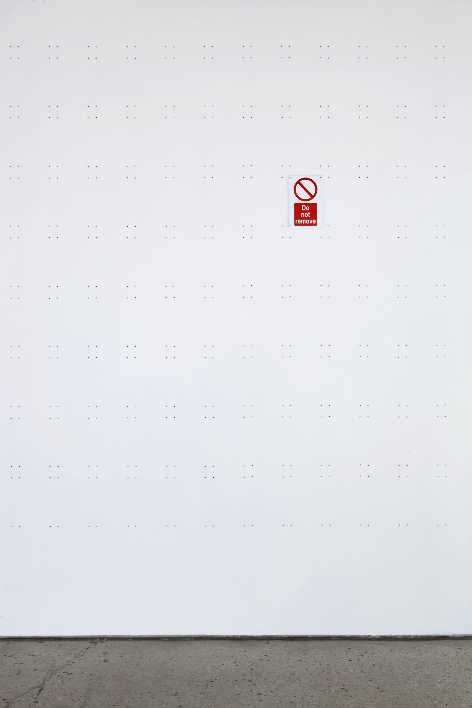 I would say I promise to stop writing about Ceal Floyer’s work soon, but, well, there’s at least one more post forming itself in my head so who knows really. She provides just the right mix of ideas, empty white space (usually, but of course now another post, about work that isn’t empty or white is starting to form) and playfulness to make sure I’m fully engaged. In consisting largely of rawlplugs, Do Not Remove reminds me quite a lot of (some of) Susan Collis’s work which I’ve also written about here ad nauseam. Plus, there’s a sign and I rather like signs (indeed I find myself slight surprised to find that I haven’t tagged loads of posts as ‘signs’ but I suspect that’s down to shoddy tagging rather than a lack of posts about signs).