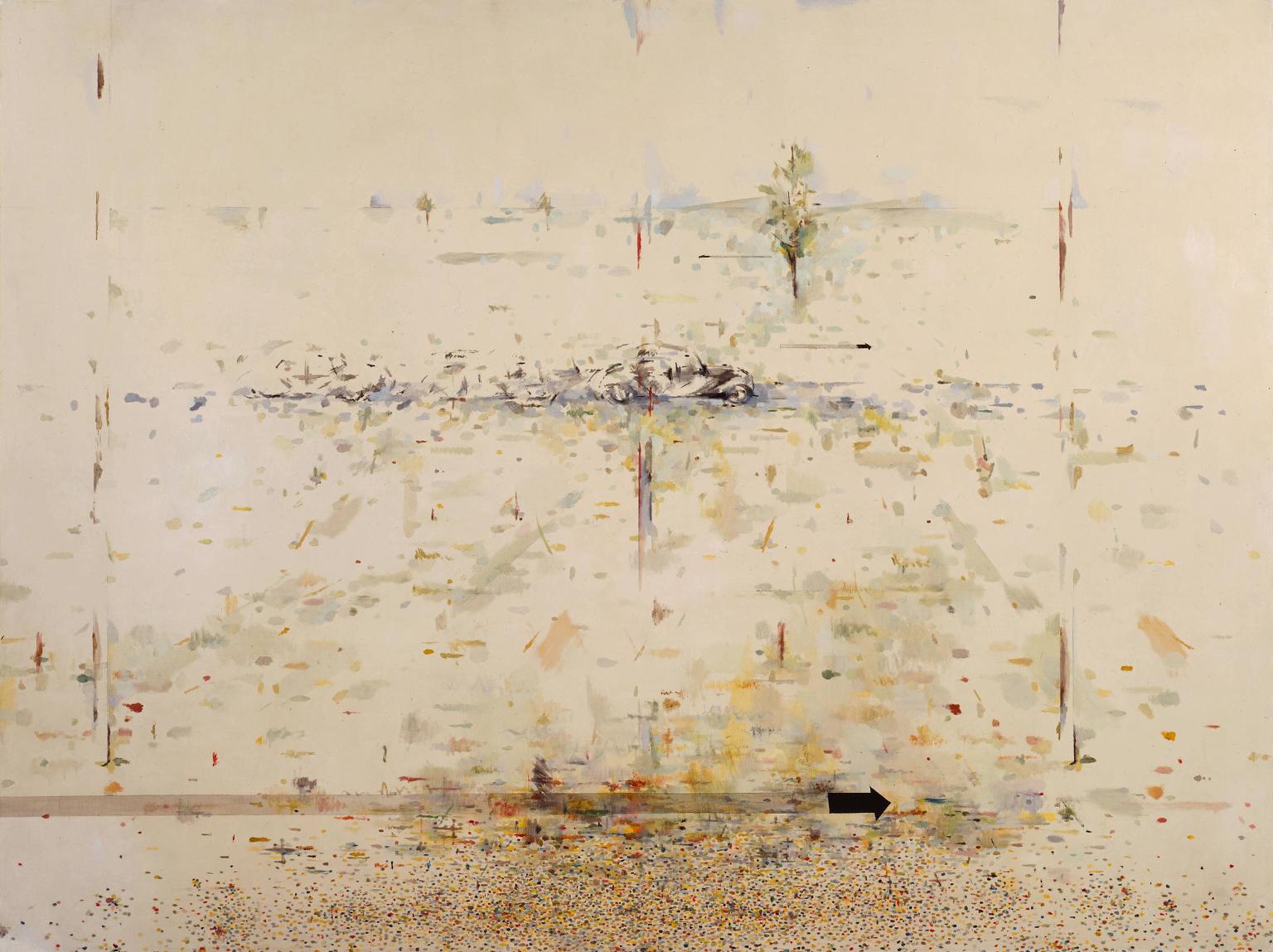 The paintings talk of the ever changing view from the window as the countryside rushes past the train. They talk of that weird thing that happens when you look at the view and some things seem still while others are blurred beyond recognition as they hurry past. Arrows show what whooshes where. The paintings are thin on detail (adding to their universality) but laden with familiarity. Train views are all about tiny details . They are about the things it takes days of watching to make sense of. The landscape changes all the time, of course, but what changes more is how we look. I am always finding new features to the world I rush through each day; I’ve been known to swear blind that very obviously nineteenth century buildings “weren’t there this morning”. Obviously I could pay better attention but I like the randomness of letting the view rush past in it’s own disorganised way. The constant surprises please me.