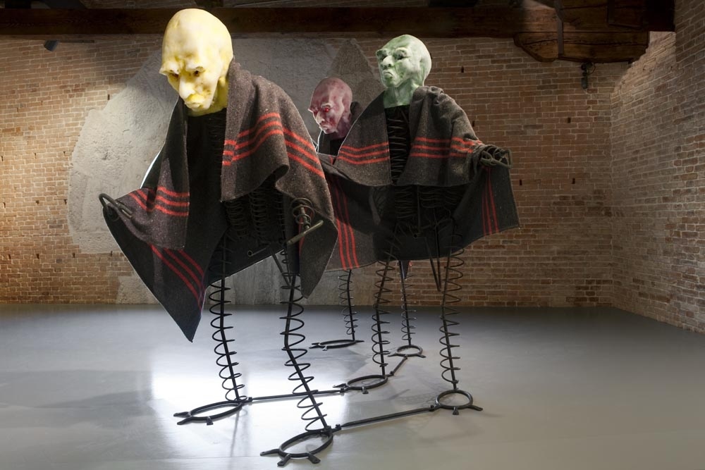 The is a something visually confusing about Roni Horn’s Well and Truly, on show at the moment in at Punta della Dogana as part if the exhibition In Praise of Doubt. The work consists of a number of similar cast glass sculptures each of which looks like water, solidified – but somehow, inexplicably, as solid water, rather than ice – in the form of a low straight-sided dish (that is, as a short column with a slight rounding where the sides meet the base). The sides look sanded (though this is from contact with the mold during casting) but the tops, which dip slightly, are clear and reflect their surroundings.